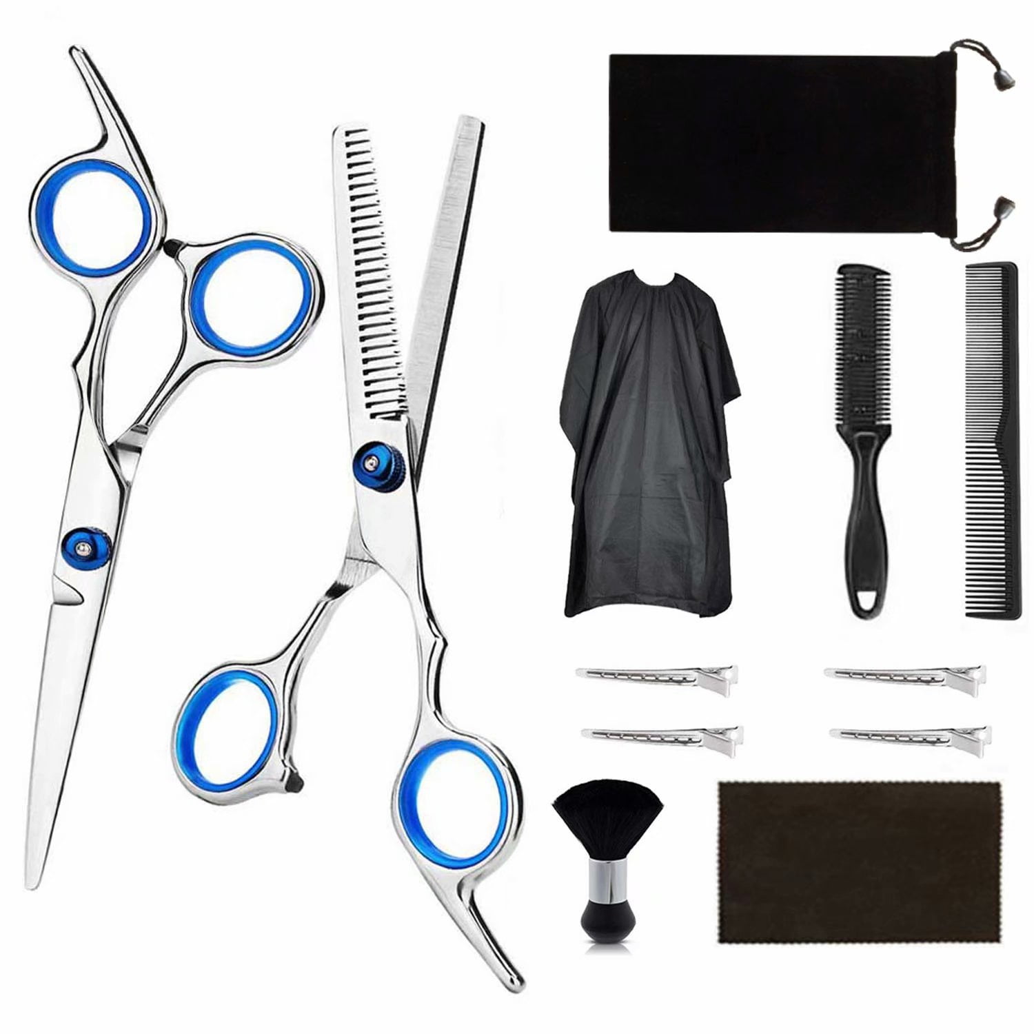 12 Pcs Professional Hair Cutting Scissors Set Haircut Scissors Kit With Cutting Scissors Thinning Shears Hair Razor Comb Clips Cape Stainless Steel Hair Scissors Set Walmart Com