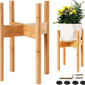Amazon Com Mkono Plant Stand Mid Century Wood Flower Pot Holder Plant Pot Not Included Modern Potted Stand Indoor Display Rack Rustic Decor Up To 10 Inch Planter Natural Patio Lawn